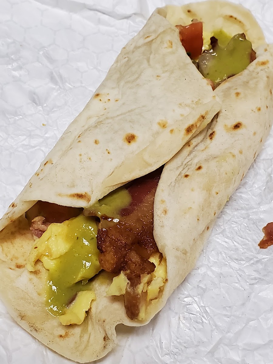 Taco Laredo is inside a 7-11 gas station/convenience store. That said, the fresh flour tortillas are very good. The service is fast, friendly, and professional. And they do have a small seating area.